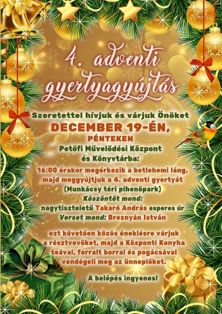 December 19. péntek – 4. Adventi gyertyagyújtás
