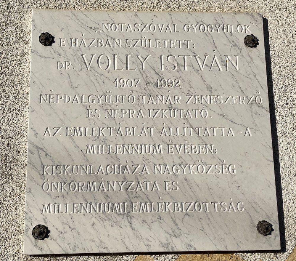 Dr. Volly István peregi születésű zeneszerző emlékére 2008-ban emléktáblát állíttatott Kiskunlacháza Önkormányzata és a helyi művészeti iskola névadója lett. – Volly István Alapfokú Művészeti Iskola –
