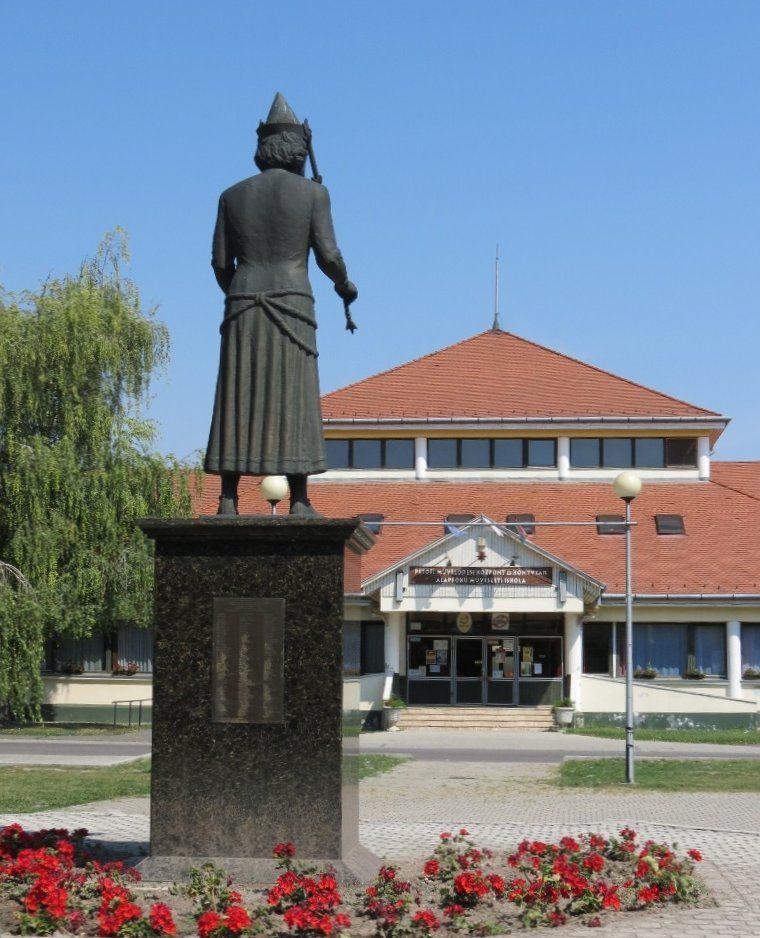 „A szobrot állíttatta 2000-ben a millennium évében Kiskunlacháza község önkormányzata, Millenniumi Emlékbizottság, Millenniumi Kormánybiztosi Hivatal. A szobrot készítette Domonkos Béla szobrászművész.„
