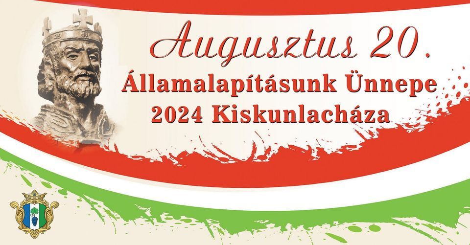 Kiskunlacháza Város Önkormányzata tisztelettel meghívja Önt és családját államalapításunk ünnepe alkalmából tartandó ünnepi rendezvényére 2024. augusztus 20-án (kedden) 10:30 órára a Szent László Római Katolikus Templomba. (cím: 2340 Kiskunlacháza, Kossuth Lajos u. 56.)