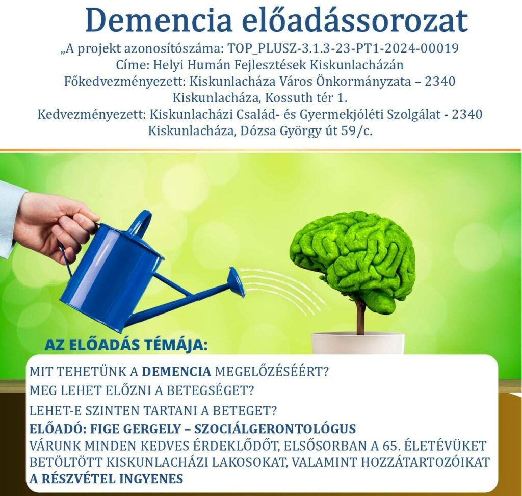 TOP_PLUSZ-3.1.3-23-PT1-2024-00019Címe: Helyi Humán Fejlesztések Kiskunlacházán – DEMENCIA ELŐADÁSSOROZAT