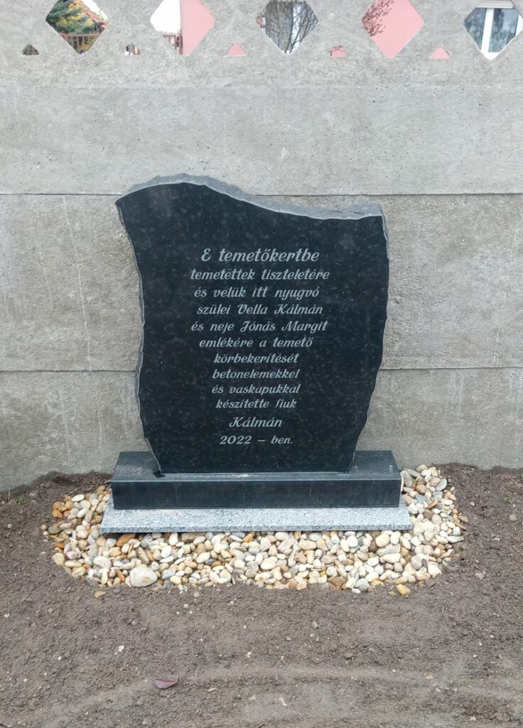 2022-ben Vella Kálmán peregi lakos saját költségén a temető kerítését és kapuit teljesen újjáépíttette, a bejárat mellé elhelyezett egy márvány emléktáblát a felújítás emlékére. Ezzel a temető rendezettebbé vált, így méltó környezetben nyugodhatnak elődeink.